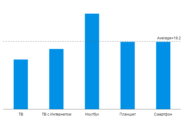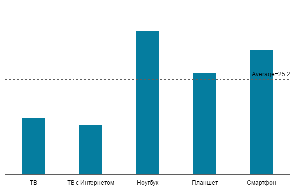Для удобства сравнения мы приводим ниже три диаграммы для наиболее распространенных девайсов: традиционного телевизора, смартфона и компьютера/ноутбука. Разумеется, ответы респондентов учитывались только в тех случаях, когда они действительно пользовались соответствующими девайсами.