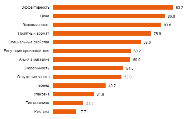 Что важно для покупателя при выборе чистящего средства, доля, %