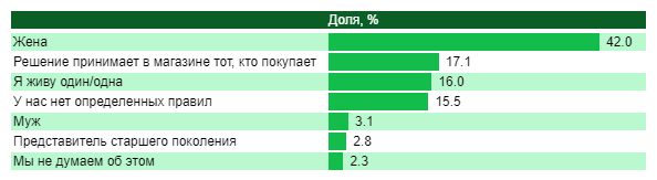 Кто обычно покупает чистящие средства в вашей семье? (один ответ), доля, %