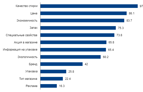 Что важно для покупателя при выборе стирального порошка, доля, %