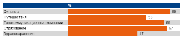 Доля потребителей, которые считают, что компании в данных индустриях демонстрируют.., %