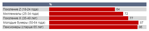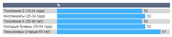 При определенном оптимизме молодых людей по отношению к «машинному» будущему, больше половины даже представителей поколения Z полагают, что компании должны предоставлять персональные услуги, а именно – живое общение с сотрудниками. Разумеется, люди старшего возраста такую опцию желают еще чаще.