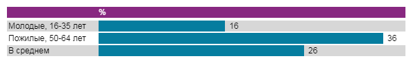 Доли молодых и пожилых россиян, которые никогда не делятся публикациями в соцсетях