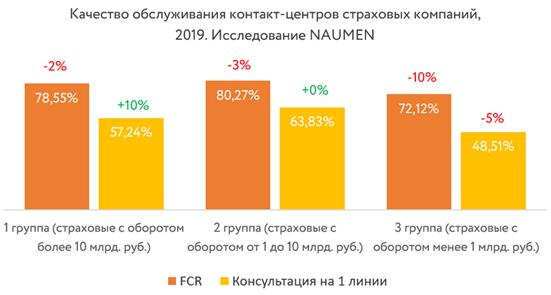 Интересно, что большой оборот страховых компаний не гарантирует клиентам быструю консультацию, а показатели FCR (доля решенных задач при первом обращении клиента) у «страховщиков-лоукостеров» зачастую бывает даже выше.