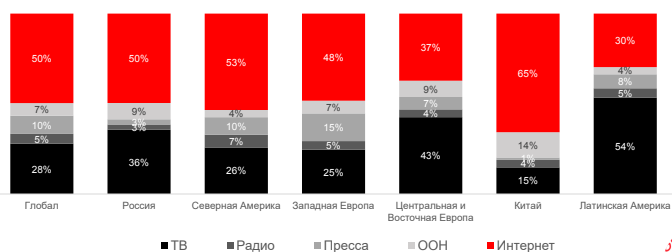 Источник: Zenith, ad expenditure share by medium, USD, forecast; current prices