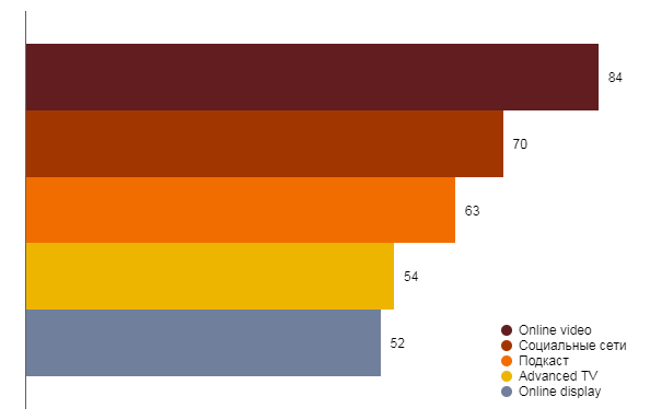 Digital по мнению специалиста Kantar Дункана Соутгейта укрепит свое доминирование в 2020 году. Это подтверждают цифры отчета Getting Media Right: 84% маркетологов планируют увеличить расходы на онлайн-видео, а 70% - на соцсети. В России данные схожие: 88% увеличат траты на онлайн-видео, при этом, увеличение бюджета соцсетей будет более внушительным – 84%.