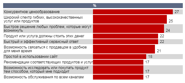 Покупатели в сфере В2В чаще всего хотят иметь более широкий спектр высококачественных услуг и продуктов, а также быстрое решение любых возникающих проблем. Разумеется, многих волнует вопрос цены, но покупателям практически так же важны такие вещи как возможность связи с продавцом по средством разных каналов и удобный сайт.