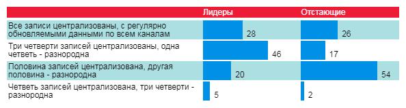 Для того чтобы определить алгоритм грамотного поведения В2В продавцов, специалисты Accenture разделили респондентов-продавцов данной сферы на лидеров и отстающих, а затем проанализировали «формулу успеха». Так, например, выяснилось, что лидеры в два раза чаще отслеживают прошлую историю покупок или просмотренные товары, а также чаще делают персональные предложения, основываясь на сумме всех вариантов поведения. Они также чаще вкладывают средства в измерение социальных сетей и анализируют настроения.