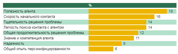 Технологии играют значимую роль при коммуникации с клиентами, но есть и другие параметры, более человеческие. Именно эта составляющая зачастую серьезно влияет на клиентский опыт. Так, для каждого пятого респондента оказалась решающей общая полезность представителя техподдержки. Интересно, что компетентность работника оказалась менее значимой, чем время, потраченное для того что бы до него «добраться».