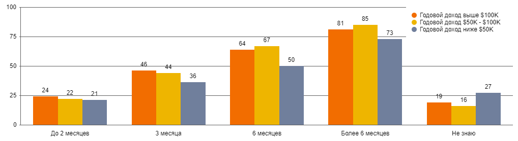 На диаграмме ниже приведены нарастающим итогом доли респондентов, указавших, что, как они полагают, та или иная активность будет доступна в соответствующий промежуток времени.
