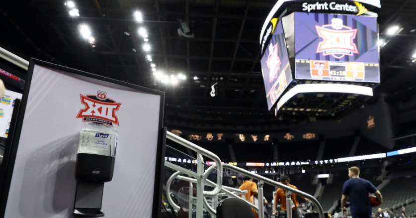На фото: санитайзер на баскетбольном матче 12 марта 2020 года, Канзас-Сити