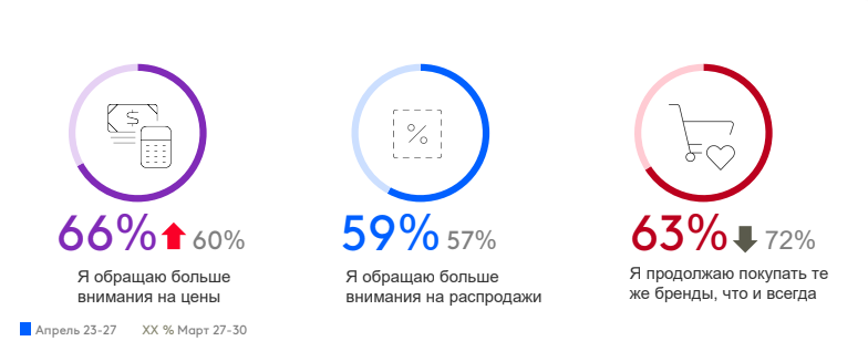 «Новая нормальность» серьезно ударит по производителям. По данным исследователей, в конце апреля серьезно «просела» лояльность к брендам и выросла значимость цены продукта. Это означает, что в кризисной ситуации компаниям лучше сосредоточиться на краткосрочных планах.