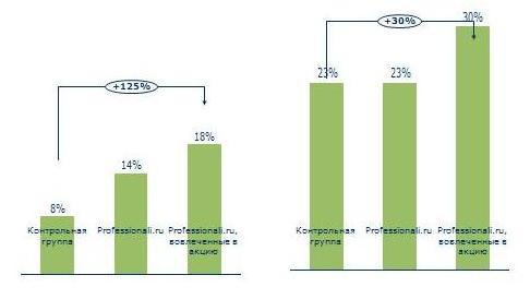 Тестовая группа Б Professionali.ru, вовлеченные в акцию