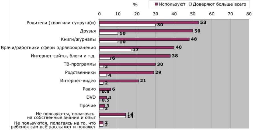 Таблица 1. Каким источникам вы обращаетесь за рекомендациями по воспитанию своих детей?