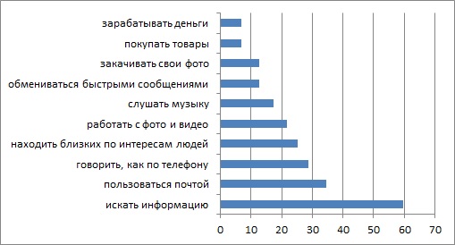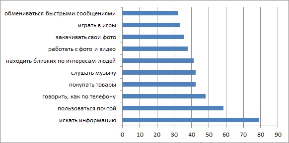 Но вот барьеры преодолены: потенциальный пользователь «готов к подключению». Что он будет делать в Интернете? Насколько его представления о возможностях этой среды соответствуют реальности? Это не праздное любопытство, ведь пользователь может как подключиться, так и отключиться. Сотовым операторам давно известен этот процесс «ухода абонентов» и даже получил свое название – отток. На бурно растущих интернет-рынках подобные явления пока незаметны, но это лишь дело времени. Итак, насколько соответствуют знания потенциальных пользователей о возможностях Интернета их реальным потребностям? Вот, что отвечают на эти вопросы «резервисты», находящиеся ближе других к «точке подключения».