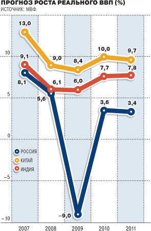 Судя по всему, люди интуитивно верно чувствуют конъюнктуру. Согласно прогнозу Международного валютного фонда, лидером мирового роста будет Китай, экономика которого в 2010 году вырастет на 10%, а в 2011 году — на 9,7%. На втором месте Индия с показателями роста 7,7% и 7,8% соответственно. Прогноз МВФ относительно России куда менее оптимистичен - рост на 3,6% в 2010, а в 2011 и того меньше – 3,4%.