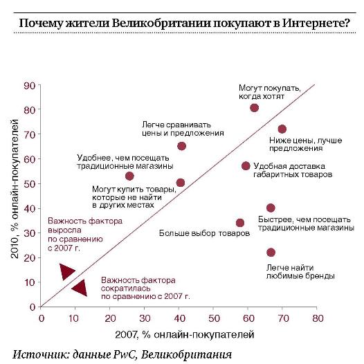 На каждой из этих стадий, естественно, могут возникнуть ошибки. Они связаны как с погрешностями измерений, так и исключением из рассмотрения того или иного важного фактора. Кроме того, могут возникать «ножницы» между охватом реально измеряемой аудитории и степенью обобщения результатов. Например, если опрос проводится среди жителей крупных городов, то нельзя делать выводы в масштабе всей страны. Правда, на многих рынках именно в крупных городах и сосредоточена львиная доля продаж, поэтому… Этот ряд «за» и «против» можно продолжать бесконечно. Посмотрим, как реализованы эти принципы в уже упомянутом исследовании PwC о тенденциях онлайн-торговли, а заодно и выясним – что же это за тенденции.