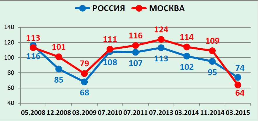 Индекс потребительских настроений в России 2008 – 2015 гг.