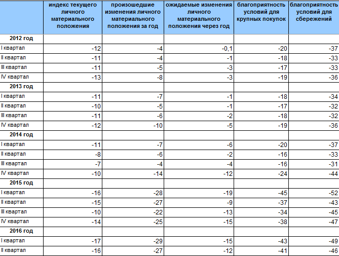 Индексы, характеризующие мнение населения о личном материальном положении и конъюнктуре товаров и сбережений