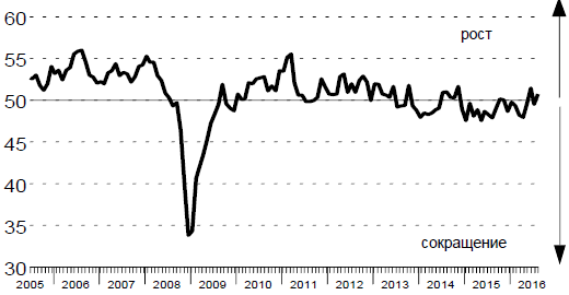 Ниже представлены накопленные данные индекса PMI, включая август 2016 года.