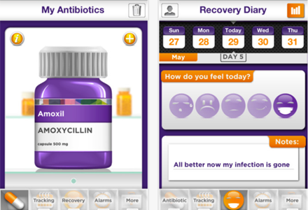 Antibiotics Reminder. (Напоминатель о приеме антибиотиков). В июне 2012 года австралийское правительство и Национальная рецептурная служба запустили проект Antibiotics Reminder. Бесплатное приложение для смартфона дает возможность пациентам устанавливать напоминания о приеме назначенных врачом препаратов, отслеживать, когда они их приняли, и вести дневник выздоровления, контролируя прогресс. Цель данного приложения – помогать пациентам корректно принимать лекарства и получать наилучший результата от лечения.