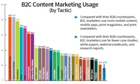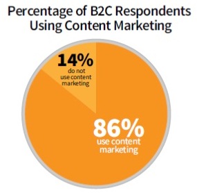 - 86% маркетологов в сфере В2С применяют в своей деятельности контент-маркетинг, используя в среднем 12 приемов.