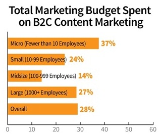 - В среднем, на контент-маркетинг отводится 28% маркетингового бюджета в сфере В2С. И 55% В2С-маркетологов планируют увеличить эту статью расходов.