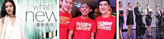 На фото: реклама средств по уходу за кожей Osiao от Estée Lauder, разработанных специально для цвета лица китаянок; Одежда марки 'DAMN! I Love Indonesia'; Компания Lenovo представляет свой новый смартфон в Индонезии.